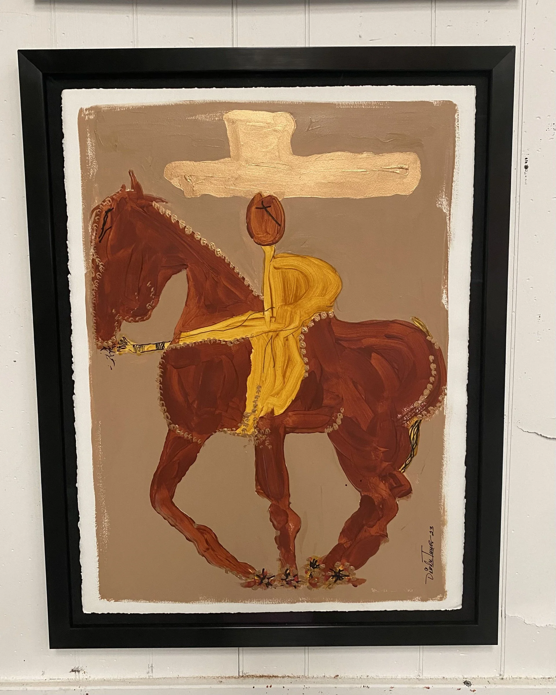Acrylic On Heavy French Arches Paper, In Black Gloss Frame With Black Linen Matte Border.